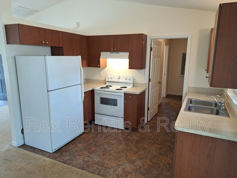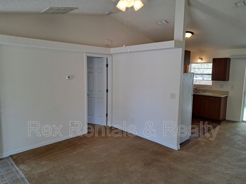 The open-concept kitchen flows seamlessly into the dining area, leading out to the backyard—ideal for entertaining or enjoying quiet outdoor moments. The additional two bedrooms are conveniently positioned between the main bathroom and extra closet space, enhancing comfort and storage options.